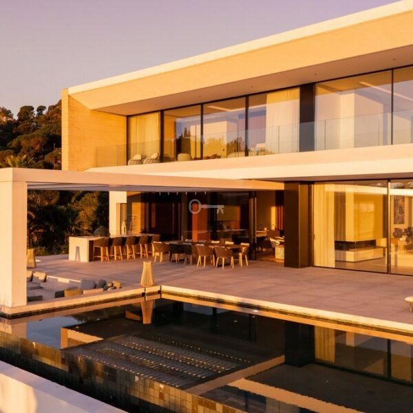 Thoughtfully designed to embrace its surroundings, the villa centers around a light-filled open-plan living space where panoramic mountain and sea views take focus. A striking entrance leads into a spectacular double-height living area, seamlessly connected to an elegant lounge, formal dining space, and a sleek designer kitchen. A beautifully appointed guest suite completes this level. Expansive floor-to-ceiling windows open onto generous terraces and a stunning infinity pool, creating a seamless indoor-outdoor flow and allowing the views to be enjoyed from every angle.
