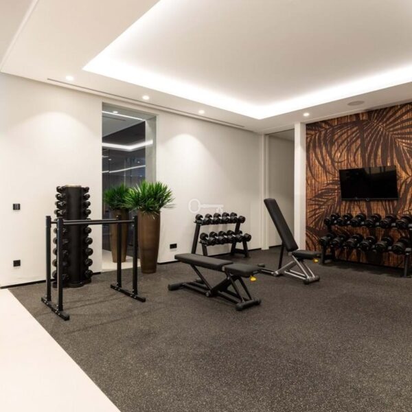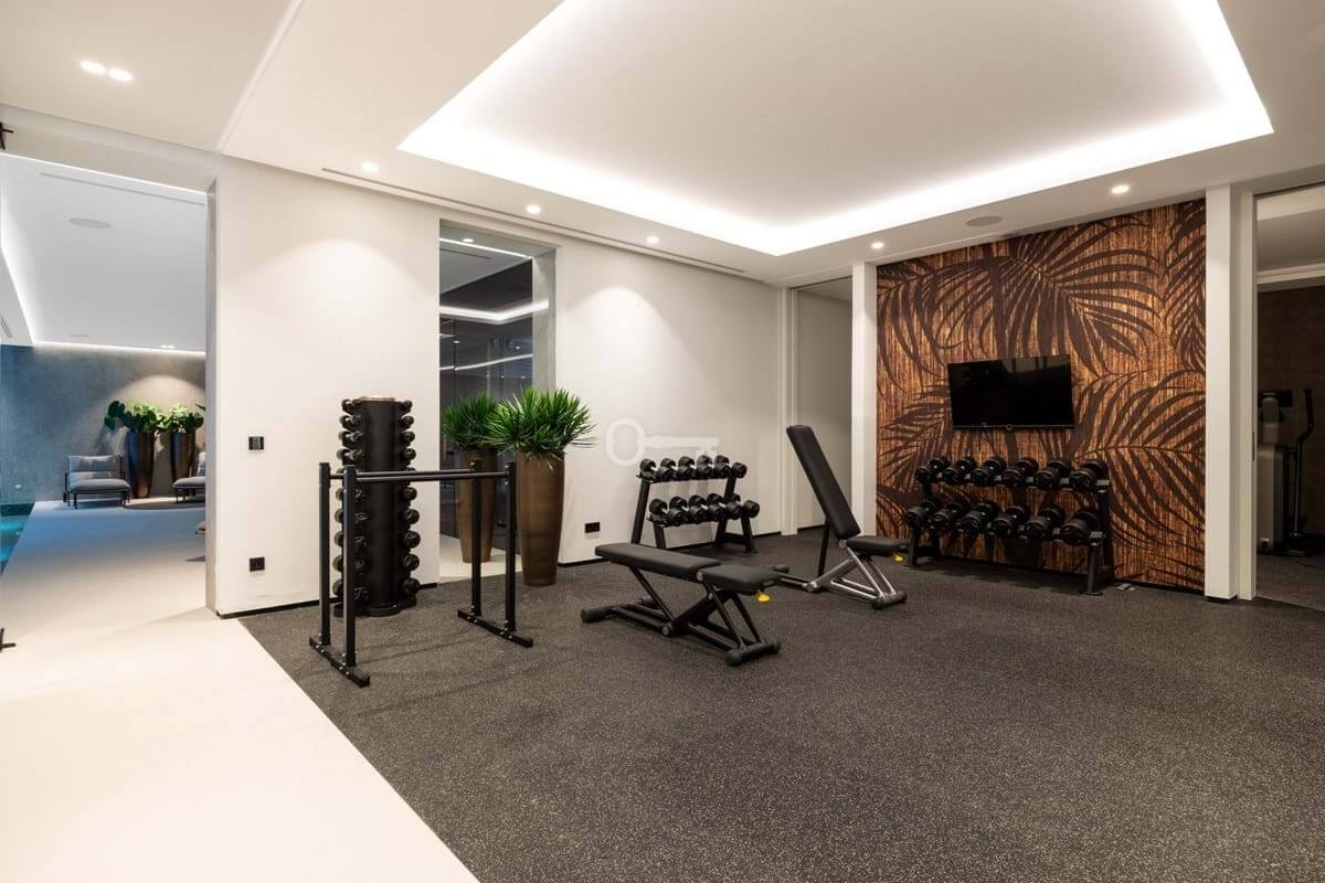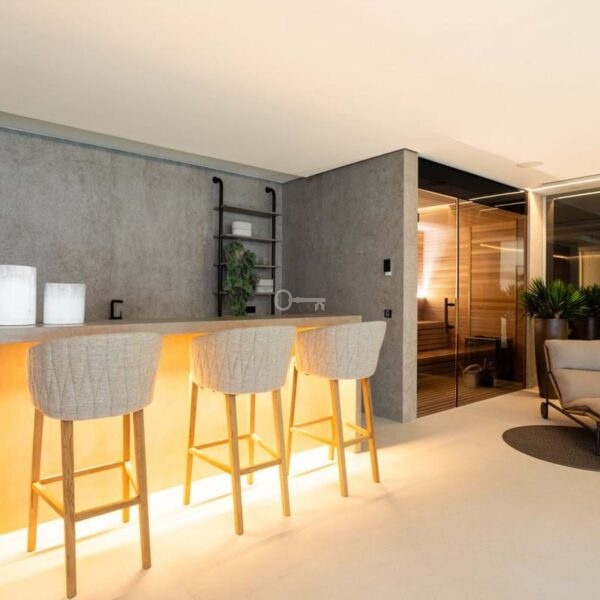The lower level is designed for leisure and wellness, offering an impressive private spa with a heated indoor pool, sauna, hammam, and a fully equipped gym. This floor also features a stylish bar, perfect for entertaining. In addition, there are two further guest suites and a fully self-contained apartment with its own living room, fully equipped kitchen, bedroom, and bathroomcreating a private and versatile space ideal for guests