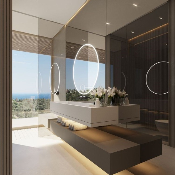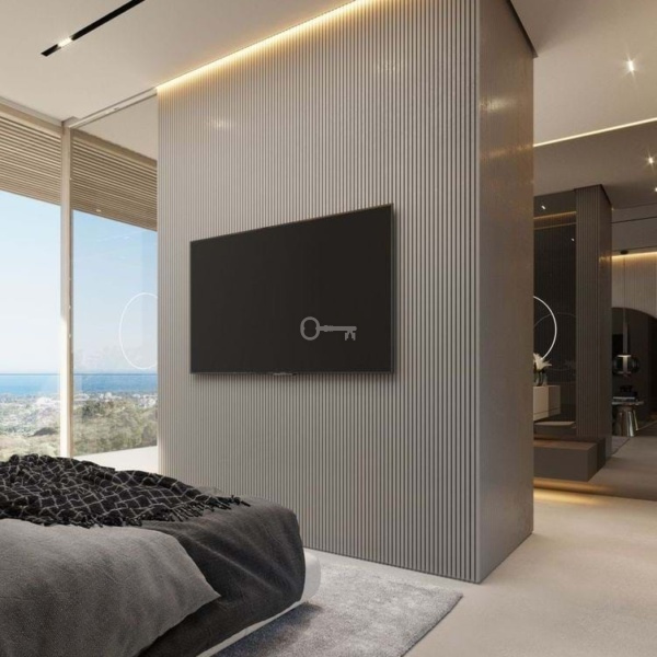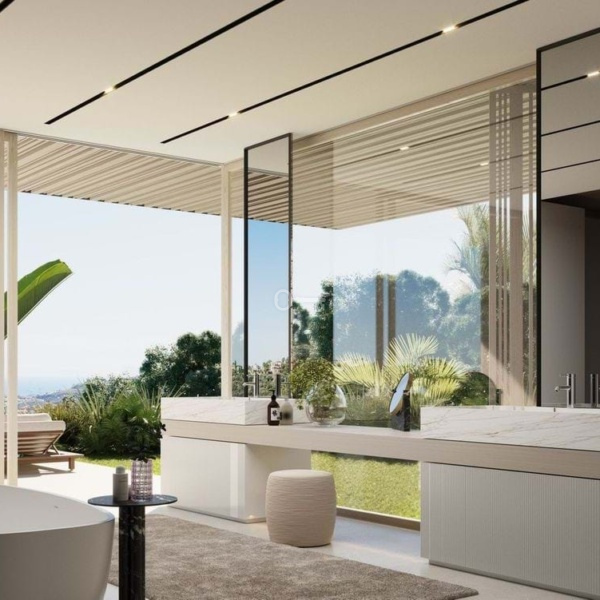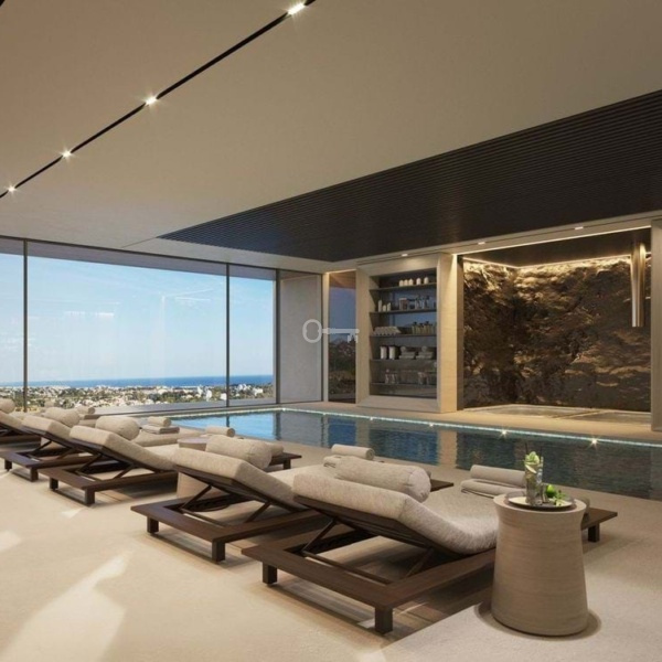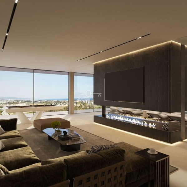 Designed for seamless indoor/outdoor living, the ground floor opens entirely to the terraces, providing comfortable chill-out areas and alfresco dining spaces with sweeping panoramic views of the sea, mountains, and Mediterranean coastline. The stunning infinity pool adds an enchanting touch to the outdoor experience.