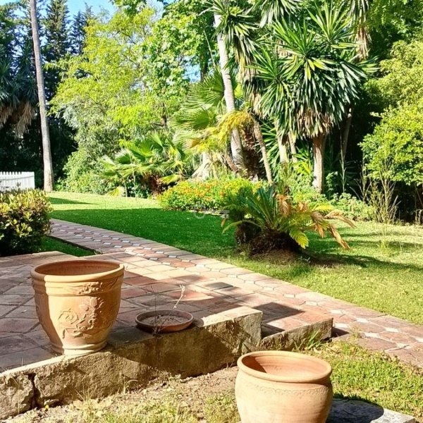 Outdoor features: pool, solarium, BBQ, terraces, mature gardens