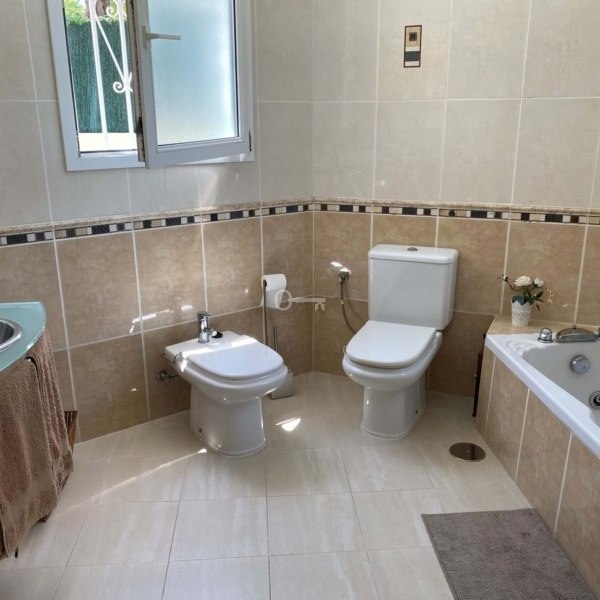 The villa benefits from under floor heating in bathrooms, separate laundry room, A/C, marble floors, storage room and driveway parking for 4 cars.