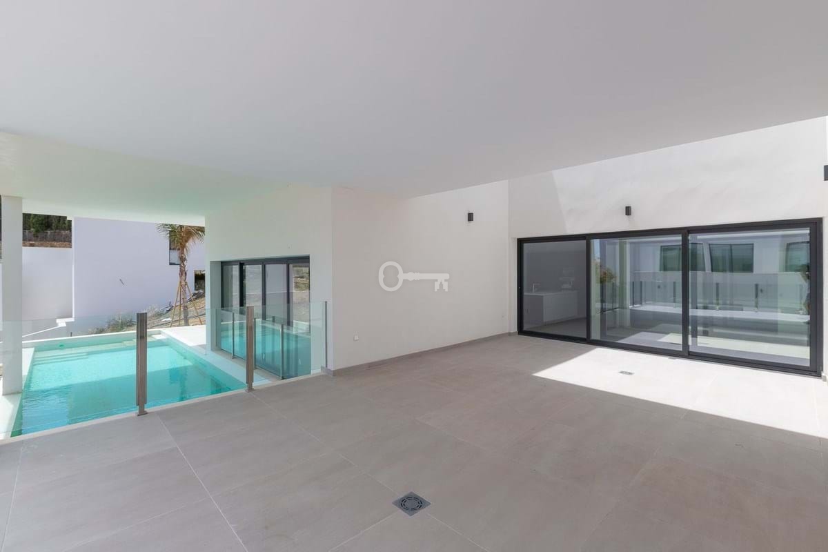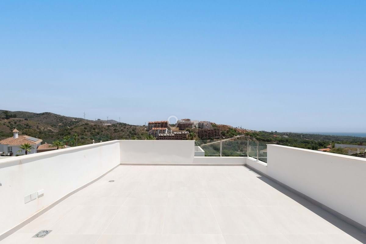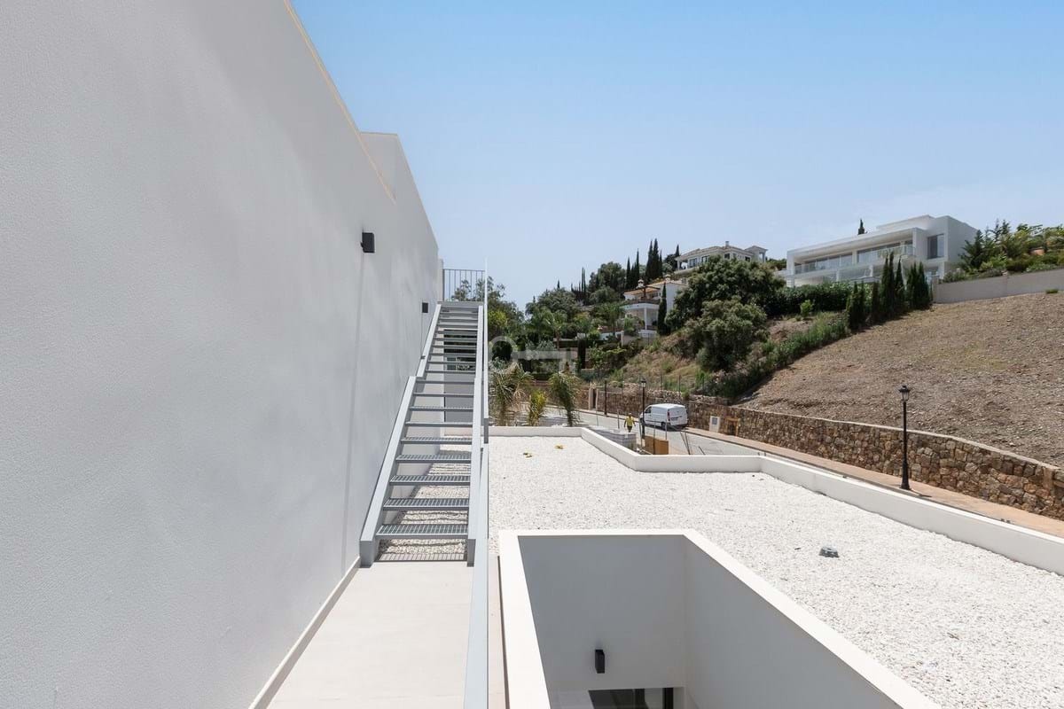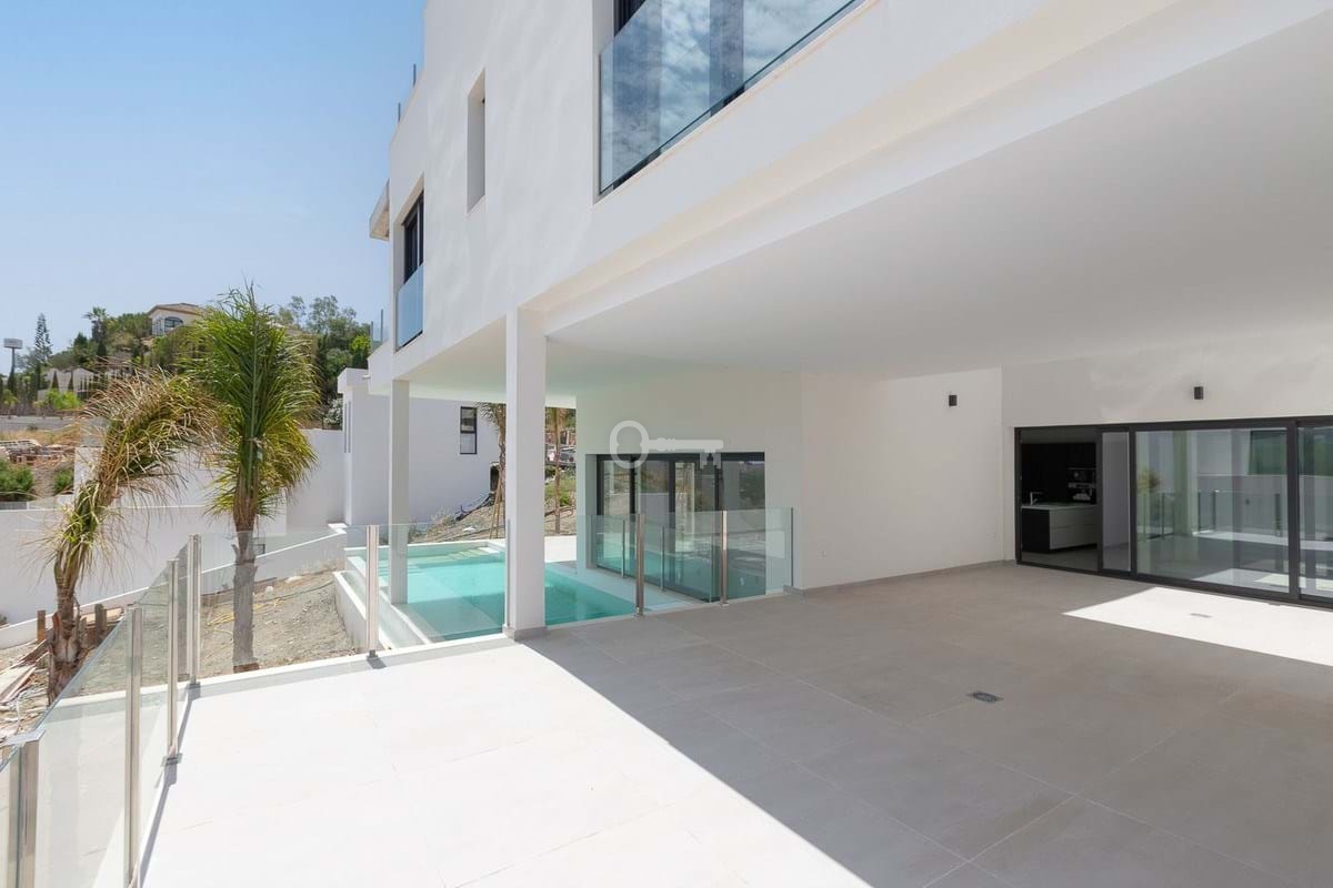 Luxurious and exclusive newly built villa located in Elviria, near the Santa Mª Golf course. The house has been built in high quality and in a modern style and has beautiful open views towards the sea. It is distributed over two floors plus the basement, and has an elevator that connects all the floors.
