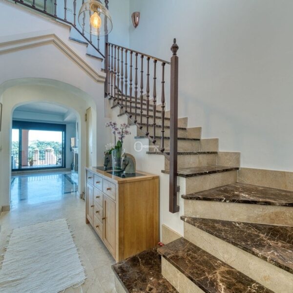 Upstairs, the home offers three generously sized bedrooms and two well-appointed bathrooms. The principal suite enjoys its own private terrace with attractive sea and golf views, while the two guest bedrooms share a modern, stylish bathroom.