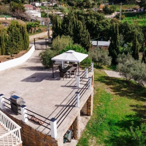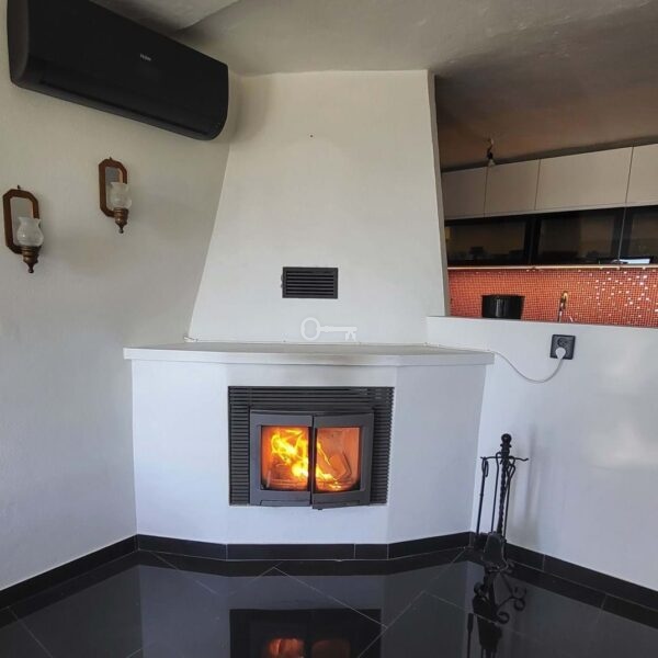 Spanning 120 m² built (100 m² usable) on a generous 4,500 m² plot, the property comprises two modern apartments and features five bedrooms, two bathrooms, a bright living area with a cosy wood-burning stove, fully equipped kitchen, storage room, garage and chicken coop. Elegant marble floors, built-in wardrobes, individual heating and air conditioning ensure year-round comfort. The large terrace is perfect for al-fresco dining, while the standout organic garden is a true delight: mature olive trees, kaki, figs, avocado, lemon, orange, grapefruit, clementine, blood orange, blackberries, pear, apple, quince, plum, cherimoya, mango, walnuts, almonds, bay laurel, lemon verbena and more plus a thriving vegetable patch.