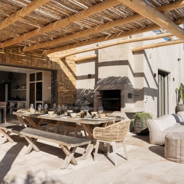 Outside, the dream continues: from the lush garden and heated infinity pool, the sea stretches out before you. Unwind in the exotic pergola lounge, play pétanque at sunset, or enjoy an Argentine barbecue with friends at the elegant wooden dining tableall in complete privacy.