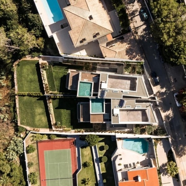 The villa is distributed over 4 floors, with elevator, gardens and terraces in harmony with the landscape and the villa itself.