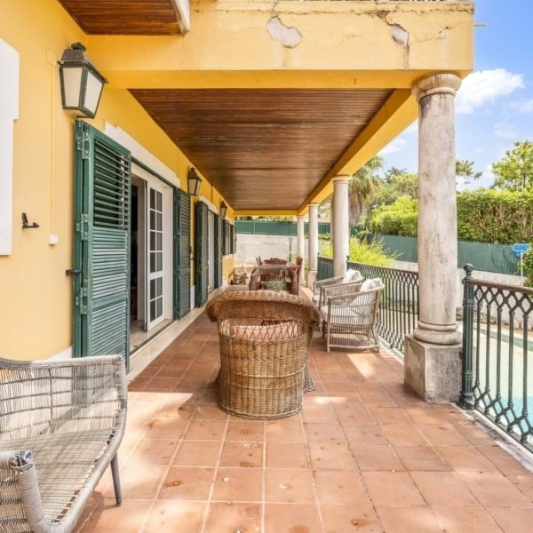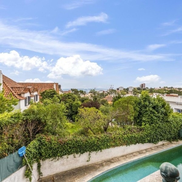 In the prestigious center of Estoril, this 5-bedroom villa offers a breathtaking view over the sea and the Cascais bay. Surrounded by tiered gardens and a south-facing pool, it combines privacy, charm, and an exceptional location.