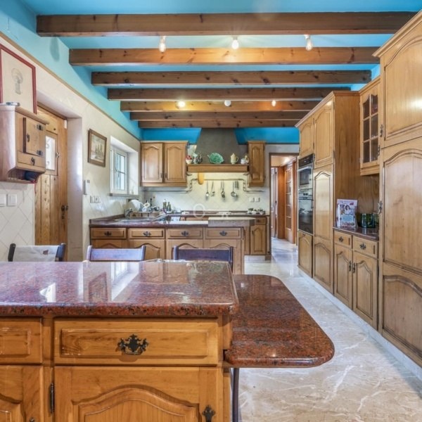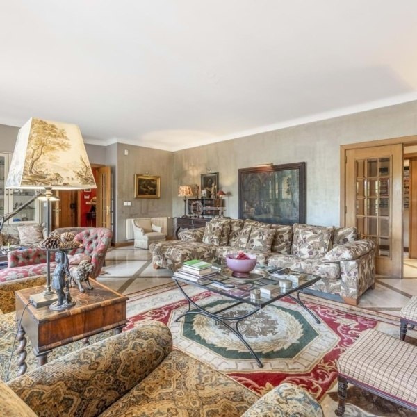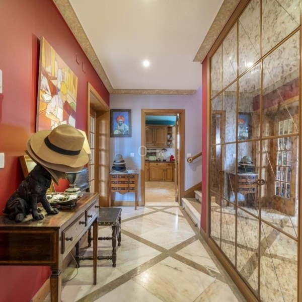 Spread over 4 floors, the property includes a spacious living room with fireplace and balcony, a kitchen with direct access to the exterior, a home office, generous bedrooms and several suites including a master suite with a panoramic balcony. The first floor features an independent area with hall, living room, and kitchen ideal for guests or staff. On the ground floor, youll find a garage for two cars and a laundry area.