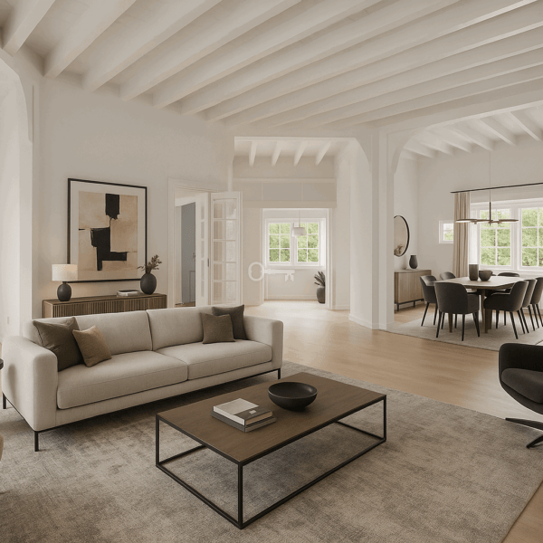 Spread over two floors, the villa offers a warm and sophisticated atmosphere. The ground floor features a comfortable suite, an inspiring office, guest bathroom, a functional kitchen, and a spacious living room with fireplace, thoughtfully divided into several cozy areas for entertaining or relaxing. Upstairs, two generous suites both with large closets and skylight windows provide absolute privacy and comfort.