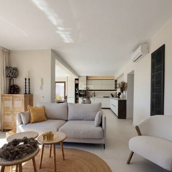 The property’s greatest asset is undoubtedly its spectacular views. The main terrace, living room, kitchen, and dining area all face the Mediterranean Sea, delivering constant panoramic vistas that feel like a permanent vacation. Turn to the other side of the villa, and you’re greeted with beautiful mountain views, creating a sense of being embraced by nature from every angle.