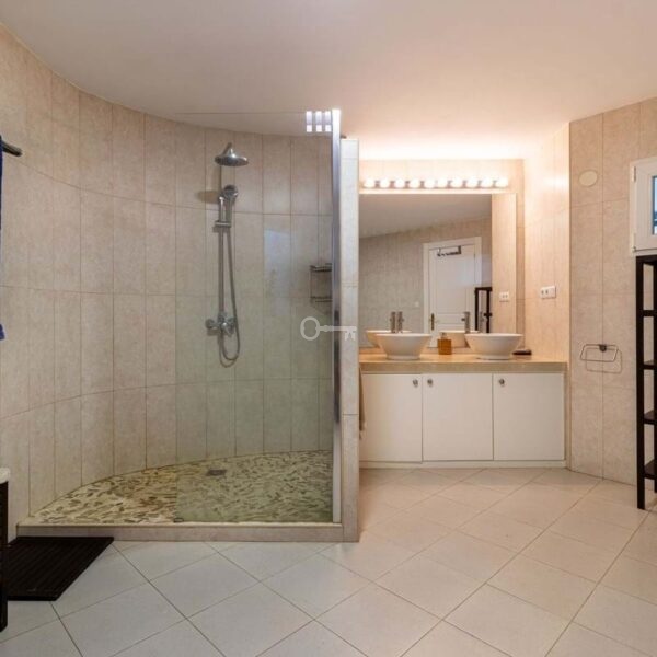 The trees that surround the exclusive Villas transfer the Mediterranean fragances to the interior of the homes, such as thyme, or rosemary. The natural division of the vegetation in each one of them allows the most intimate atmosphere of the home to be enjoyed. Breathe, and relax from the infinity pool where you can dive, while admiring exceptional views of the centuriesold carob trees and the Mediterranean Sea. Immerse yourself into the pleasure of wellbeing, relaxation, and deep tranquillity in the private spa that awaits in your villa. Breathe in the wooden atmosphere, relax in the warm jacuzzi and sauna that will heighten your senses. Admire the outdoor nature from the comfort of the sunbeds, while the blue light from the pool dives in. Our commitment to nature is everywhere using sustainable and natural materials such as wood, white river stones, or minerals. A design that allows full advantage to be taken of the panoramic views of the sea and its orange sunsets.