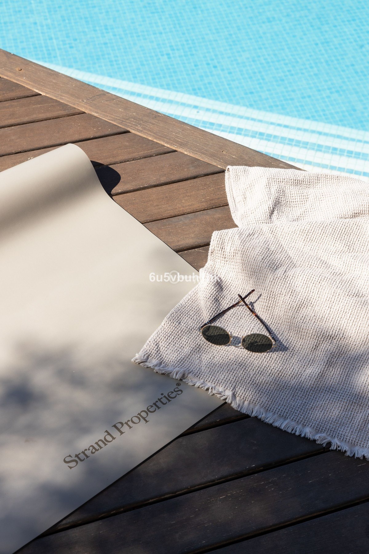 The house has four bedrooms, and its layout is designed to suit families, as the upstairs bedrooms are located close to each other. In this ready-to-move-in home, the interiors combine beautifully with the exteriors and terraces. The yard has its own plunge pool and a Finnish sauna, as well as direct access to the common infinity pool, which has wonderful panoramic views of the sea and the city.