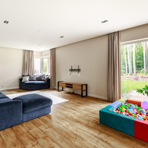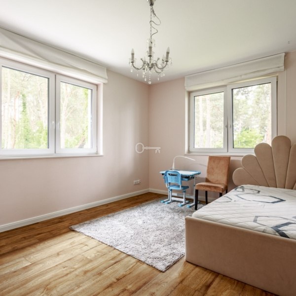The house is located in a family area. Around silence, peace and greenery, however there will certainly be no shortage of shops and all necessary infrastructure. Getting to the center of Warsaw will take only 20 minutes by train (to Dworzec Gdański). The proximity of full urban infrastructure and green areas provided by the location of the property is an ideal place to live for a family.