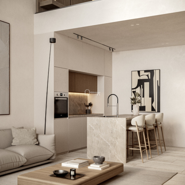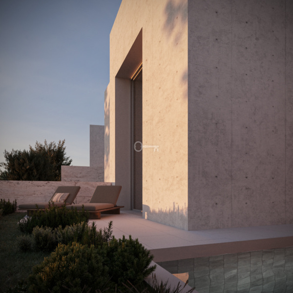 The development consists of 17 elegant two-bedroom villas, available in detached and semi-detached versions. Each villa is carefully crafted to the highest standards, reflecting a modern aesthetic. Features include floor-to-ceiling windows that maximize natural light and views, travertine finishes that add elegance, large floor tiles that magnify the feeling of spaciousness, and built-in plumbing fixtures that ensure functional bathrooms. Concealed air conditioning ensures comfort while maintaining a neat appearance.