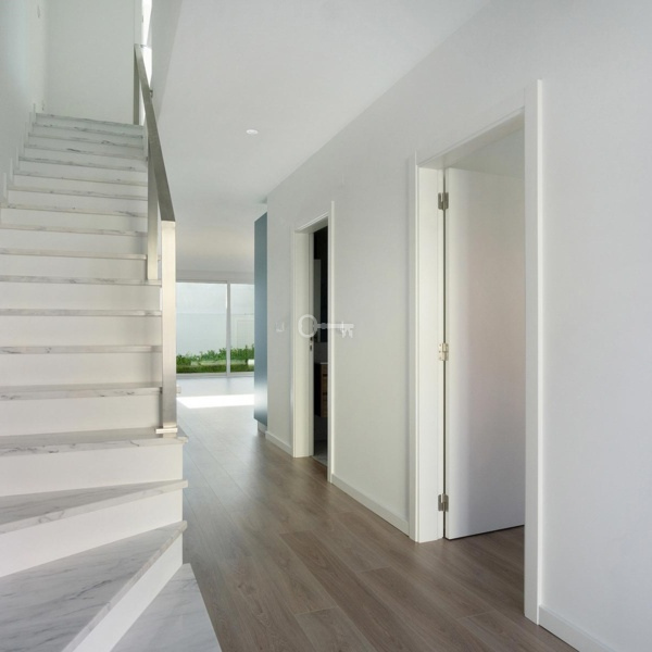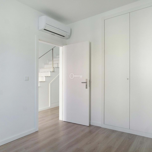 3-bedroom villa, 147.73 sqm (gross construction area), entirely remodelled, with garden and swimming pool in the centre of Grândola, district of Setúbal, region of Comporta. The contemporary architecture villa has been thoroughly remodelled and has two floors. The ground floor has a spacious living room and American kitchen with access to the outdoor area, one bedroom, and bathroom. The upper floor has a storage area and two suites, both with private balcony.Outdoors, there is a 22.64 sqm wooden deck with dining area, garden and swimming pool.Located on one of the main avenues of the town of Grândola, 5-minute walking distance from the main services, shops and the train station. 5-minute driving distance from the Health Centre and main hypermarkets, nursery school and primary, secondary and vocational schools of Grândola. 20 minutes from Comporta and its beaches, 20 minutes from Melides, 30 minutes from the Southwest Alentejo and Vicentine Coast Nature Park, and 50 minutes from Setúbal. One hour from Lisbon.