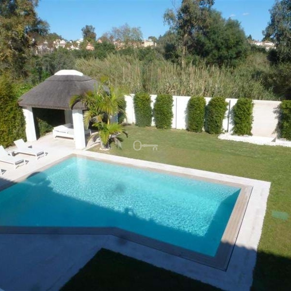 This stunning south facing villa is very close to the Guadalmina Golf Course, 350 meters distance to the beach, walking distance to all amenities and only 5 minutes drive to Puerto Banus, Marbella.