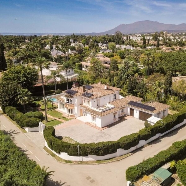 This newly renovated luxury villa is situated in one of Marbella’s most prestigious and established neighborhoods, just three minutes from the beach. The property masterfully combines traditional Andalusian architecture on the exterior with sleek, modern interiors, offering a harmonious blend of timeless elegance and contemporary comfort.