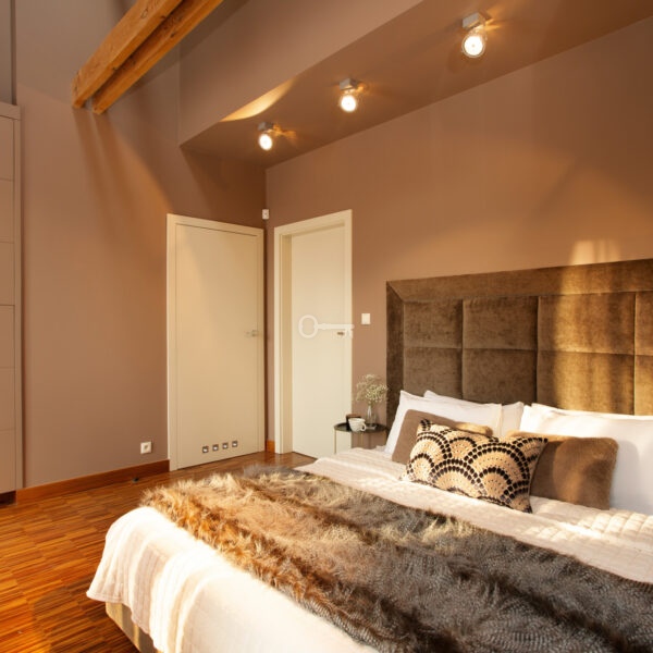 - Master Suite: Sypialnia z łazienką i garderobą (łącznie 34 m²) to Twój prywatny hotel pięciogwiazdkowy. Każda sypialnia na piętrze ma wyjście na taras – bo każdy zasługuje na własny kawałek nieba.
