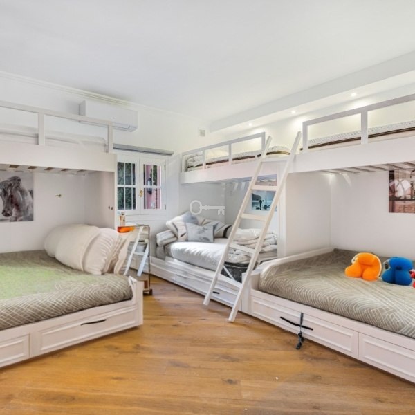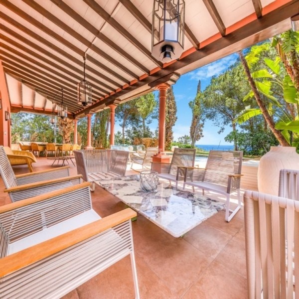Magnificent six bedroom Villa located in Hacienda Las Chapas, Marbella. This property is close to amenities, golf courses and the beach, with only a short ten minute drive to Marbella. The villa boasts spectacular sea views from both the ground floor and first floor; the entrance level has a spacious open plan living and dining room with built in fireplace, lounge and access to the terrace, garden and private swimming pool; fully fitted kitchen; guest suite; and a guest toilet. The first floor has the master suite with walk in closet and spacious terrace with beautiful views to the sea and pool; four guest suites and a terrace with wonderful sea views. The lower level of the property leads to the gym and spa, complete with bathroom, sauna and Hamam. There is also a storage room; laundry room; and lounge area on this level. Other features include hot and cold air conditioning, double car port, fitted wardrobes and solar panels. There is also an approved project to add an independent guest house of 130m2 with three bedrooms and bathrooms.
