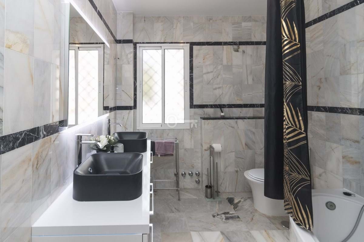 On the upper floor 4 bedrooms with 3 full bathrooms and a small winter garden.