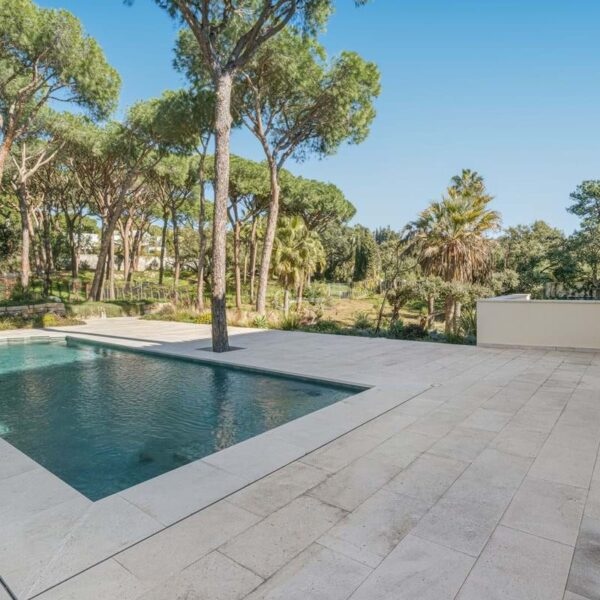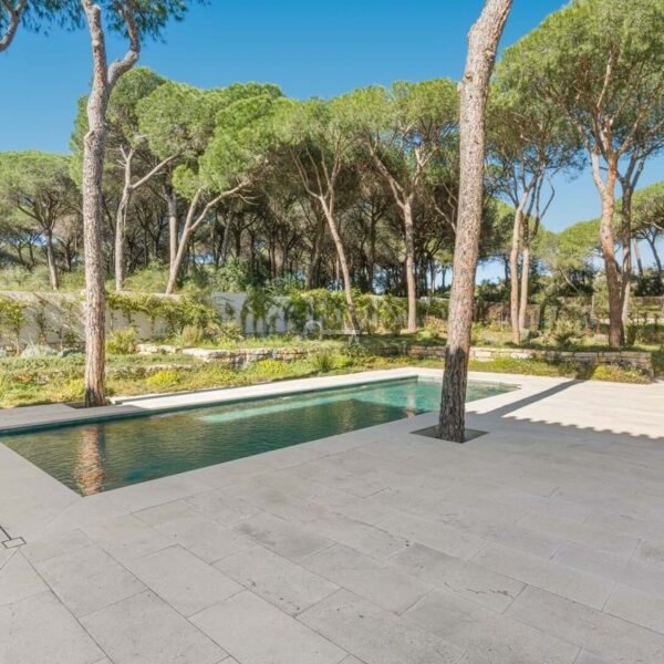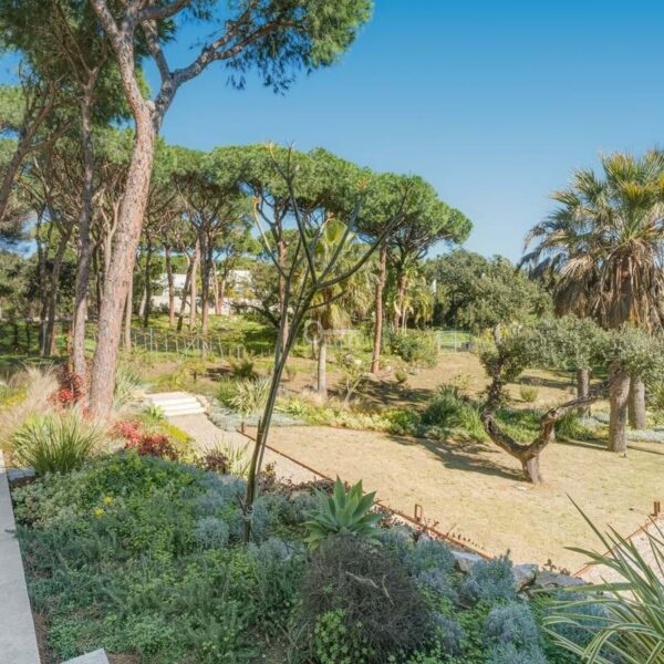 This bright detached villa offers an abundance of privacy surrounded by many mature pine trees and set within a 2,850 m2 landscaped garden, very attractively designed including a swimming pool, large terrace and barbecue area and boasts many spacious, sunny terraces.