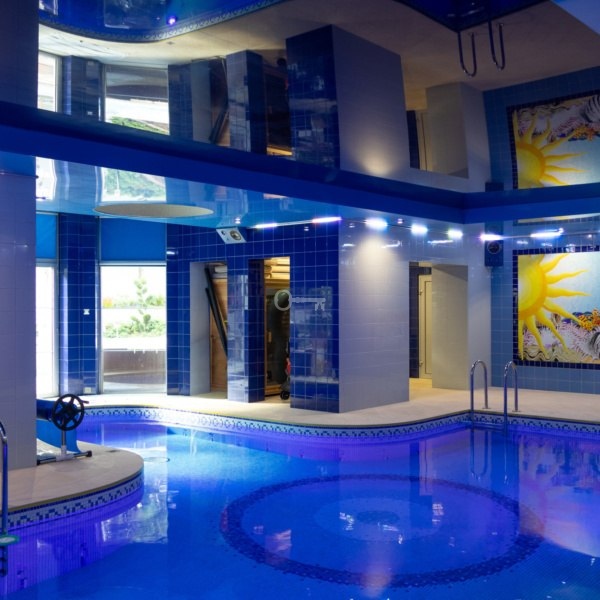 * Indoor swimming pool (200 m²) with counter-current, massage and geyser,