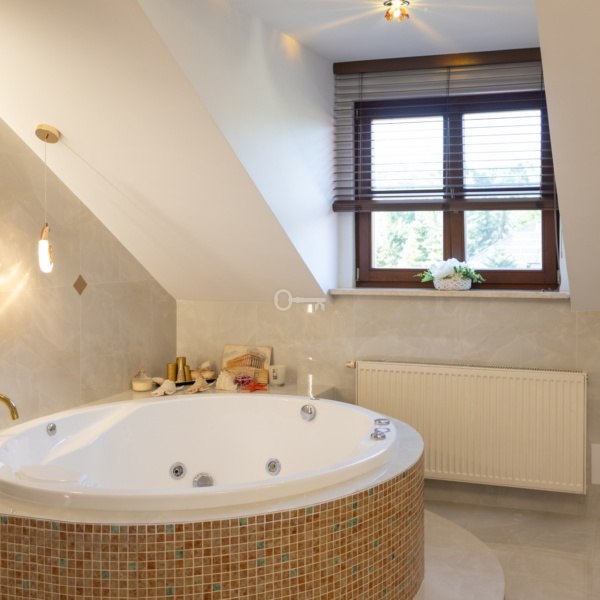 The house was built in 2005 according to an individual design, and in 2025, it underwent a comprehensive renovation that covered both the interior and the surroundings of the property. The interior of the residence is decorated with elegant oak flooring, which gives the rooms a timeless character and warmth.