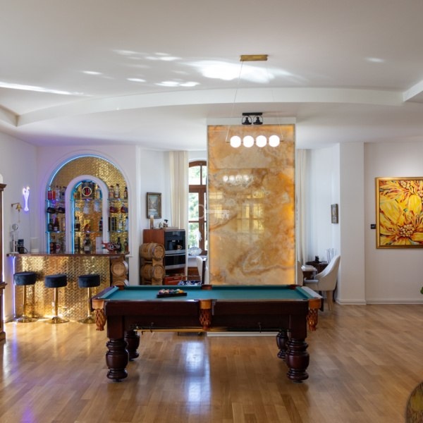 The residence is equipped with smart control systems that increase both safety and comfort of everyday use. A monitoring system consisting of 20 cameras provides full control over the property, while the Hormann entrance gate is operated by both a remote control and a mobile application.