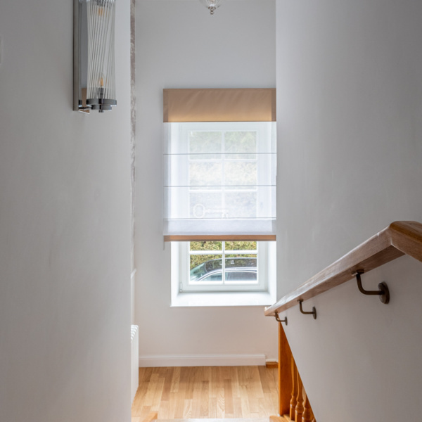 The brightness of the interior is ensured by large windows and an appropriate selection of colors and accessories.