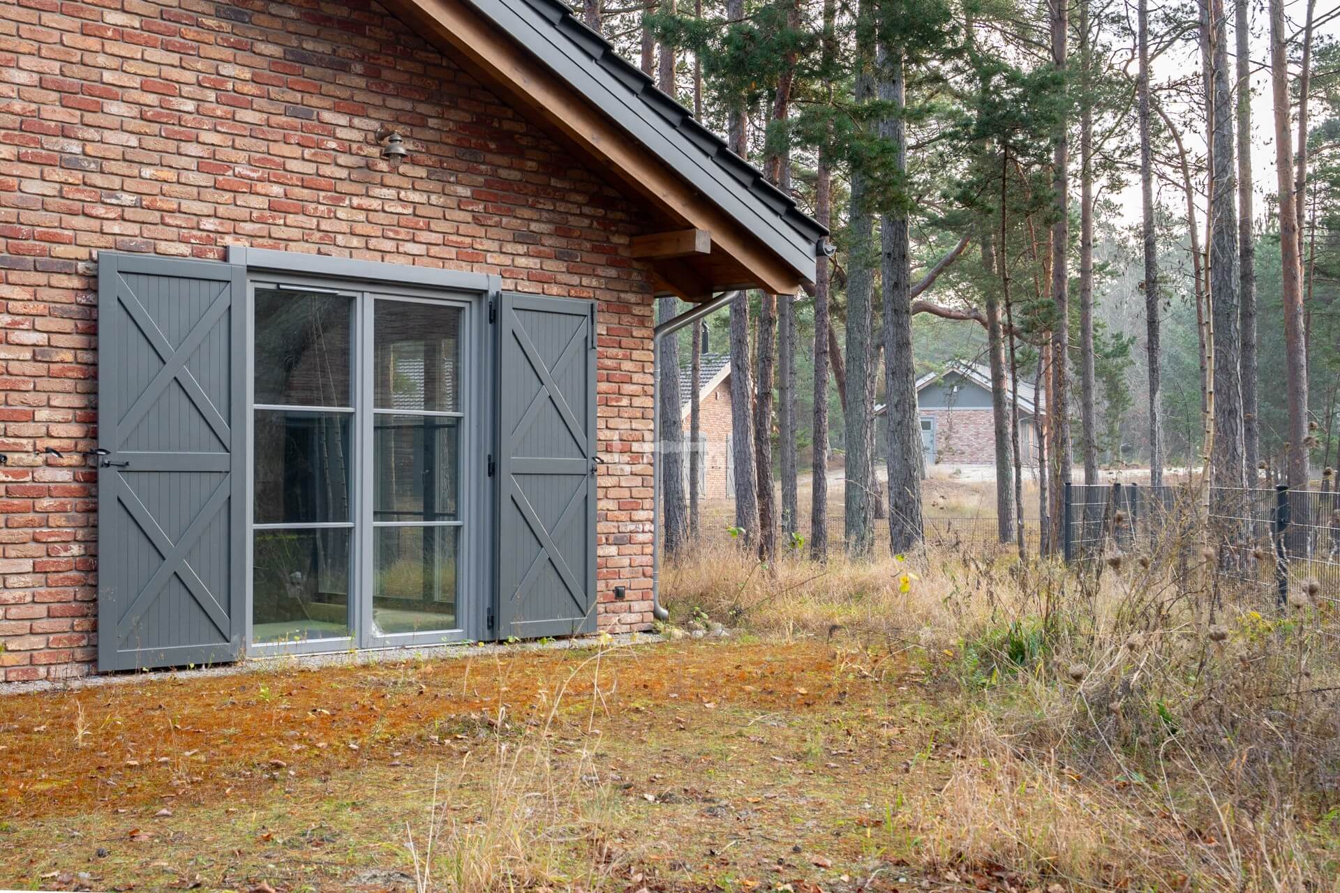 The design stands out with minimalist building forms and large glazing that invites natural light into the interiors. Combined with the subtle red of hand-formed clinker brick and the elegant gray of wooden shutters, this creates a restrained and harmonious style.