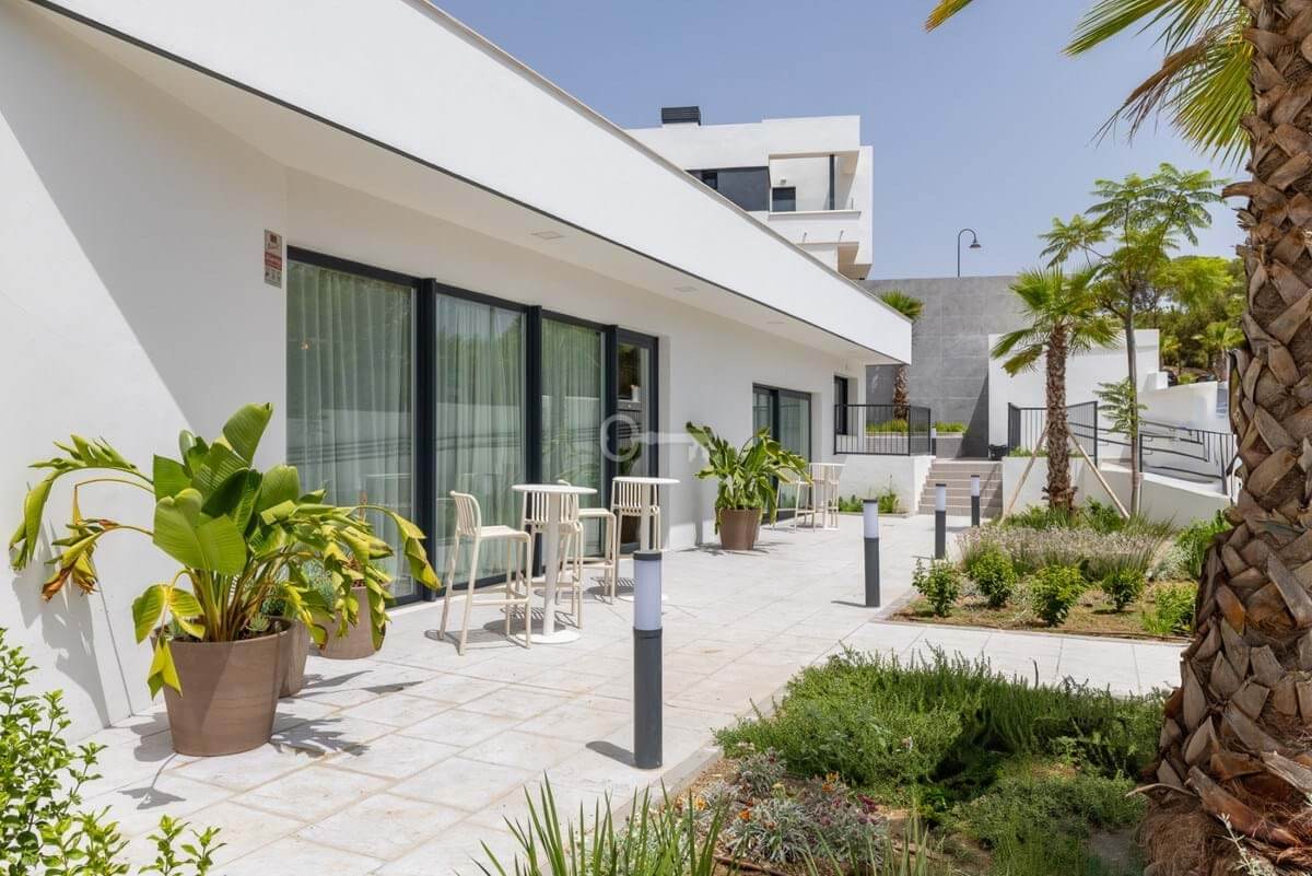 The homes include spacious terraces, with many offering sea views, and some feature private garages with direct access to the property. Residents can enjoy excellent communal areas with landscaped gardens, a swimming pool, gym, sauna, and a social-gourmet lounge.