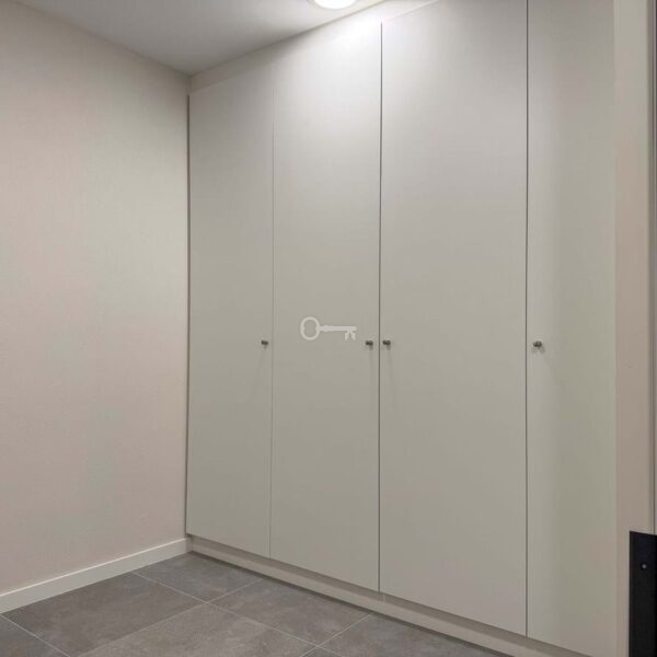 The main living area is bright and welcoming, opening onto a spacious west-facing terrace. Large glass doors allow natural light to fill the interior while creating a natural flow between the living room and the outdoor space. The terrace offers ample room for both lounge seating and outdoor dining, making it an ideal setting for relaxed evenings and entertaining.