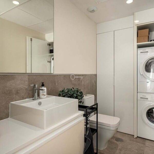 From the moment you enter, you are welcomed by expansive open-plan living areas with double-height ceilings, floor-to-ceiling sliding glass doors and an abundance of natural light. The Scandinavian-inspired interior is curated with impeccable attention to detail, featuring premium materials, bespoke finishes and a fully equipped designer kitchen ideal for entertaining on any scale.