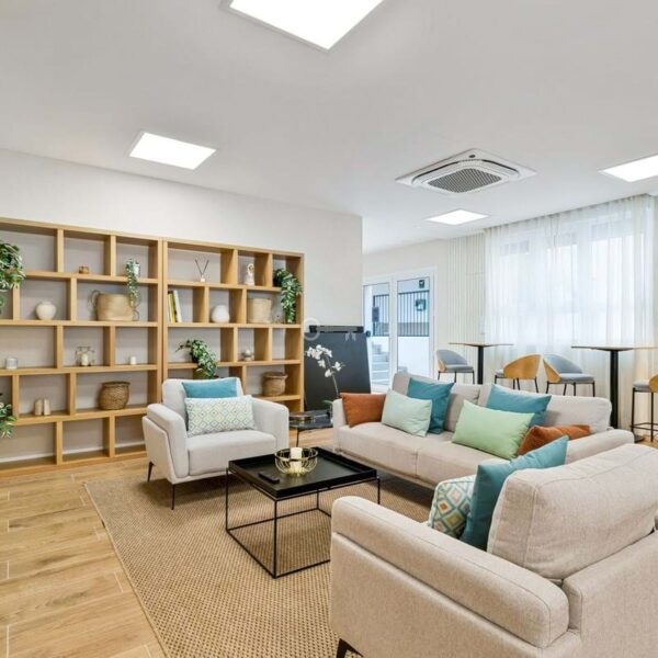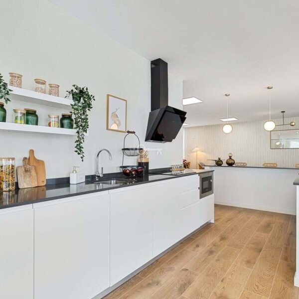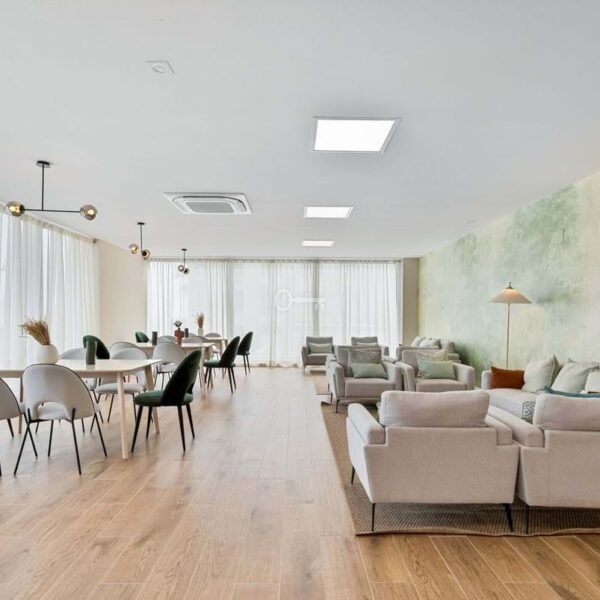 Every floor offers stunning sea views. The beach is just under a kilometer away via a nearly flat and easy walk. Within a few hundred meters, you will find grocery stores, a medical center, charming cafés, and fine
