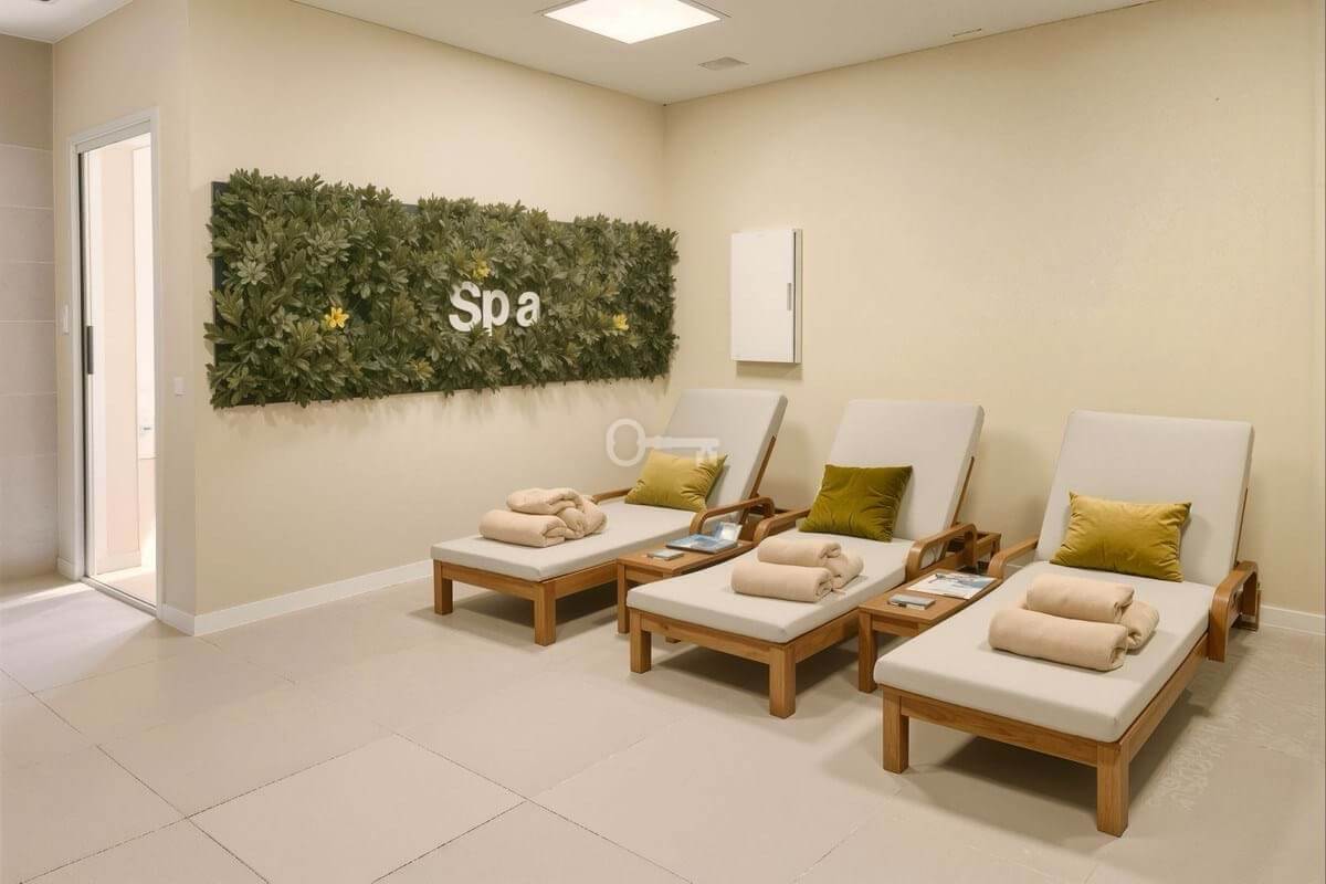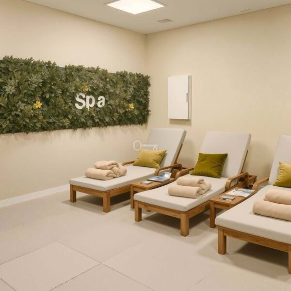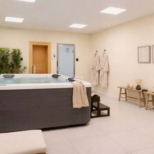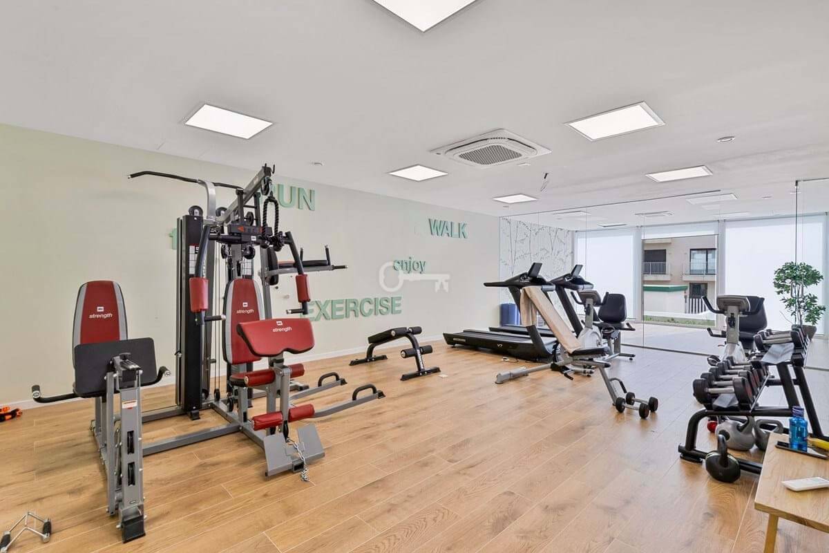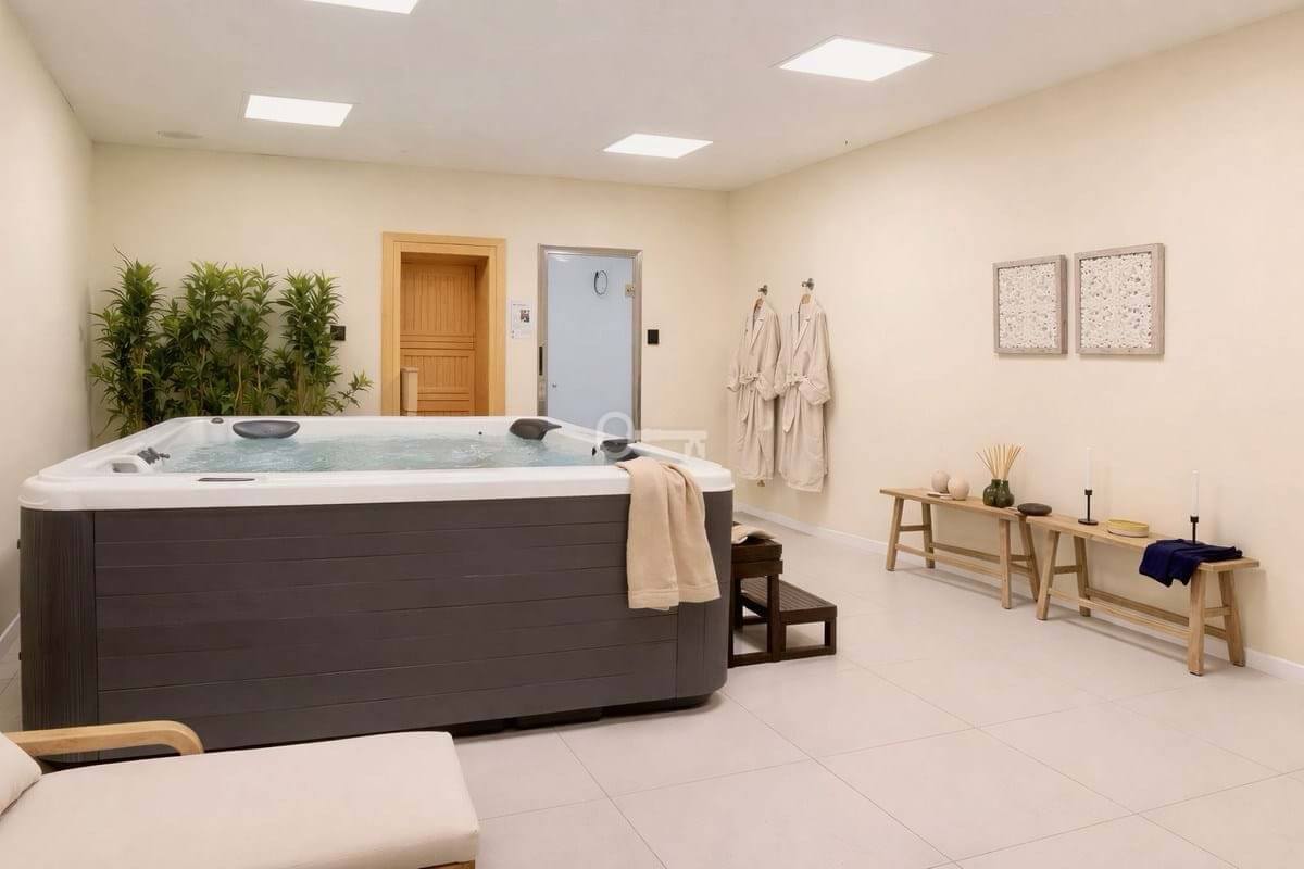 In addition to your private outdoor spaces, you will enjoy access to Cala Serena Villages shared facilities: a large pool surrounded by lush greenery, a fully equipped gym, a spa with two types of saunas and a jacuzzi,