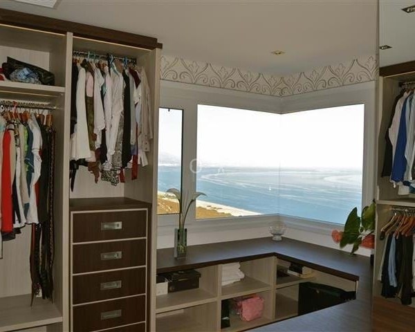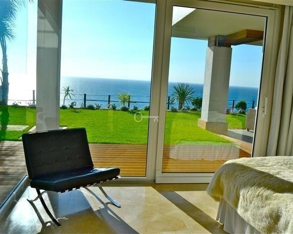 Outside, the villa continues to impress with an infinity pool that seems to blend into the sea, expansive terraces, and landscaped gardens designed for relaxation and outdoor living. Additional features include independent guest accommodations, a four-car garage, security shutters, and automated gates.