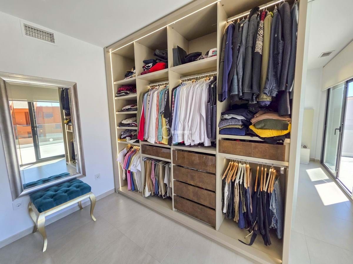 The property offers a built area of 168 m², distributed in bright, open spaces. It has 3 large bedrooms and 3 full bathrooms, although the property was originally designed with 4 bedrooms, allowing easy conversion if more space is needed. The master bedroom includes two large walk-in closets, providing maximum comfort and storage capacity.