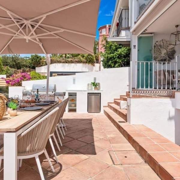Located in the award winning village of La Heredia, close to Benahavis on the Ronda road, this beautiful 5-bedroom townhouse offers spacious living in a private, secure community. Enjoy breathtaking views of the mountains and sea from the main living areas. Every single house is unique in this beautiful village where tourists flock to photograph it.
