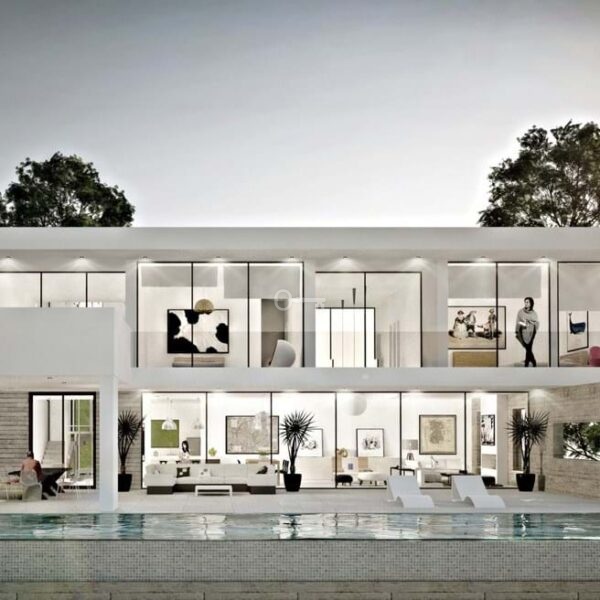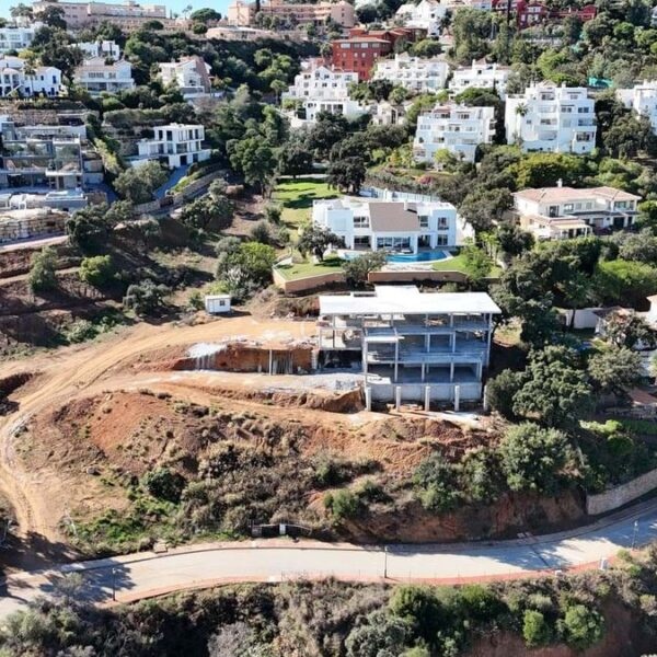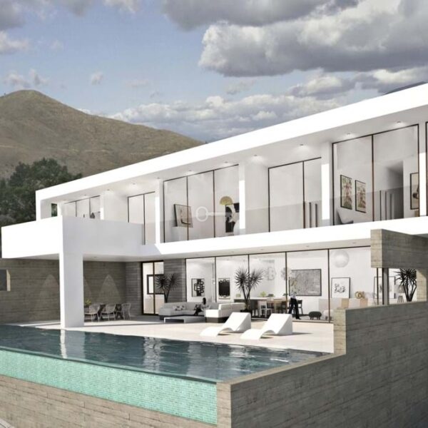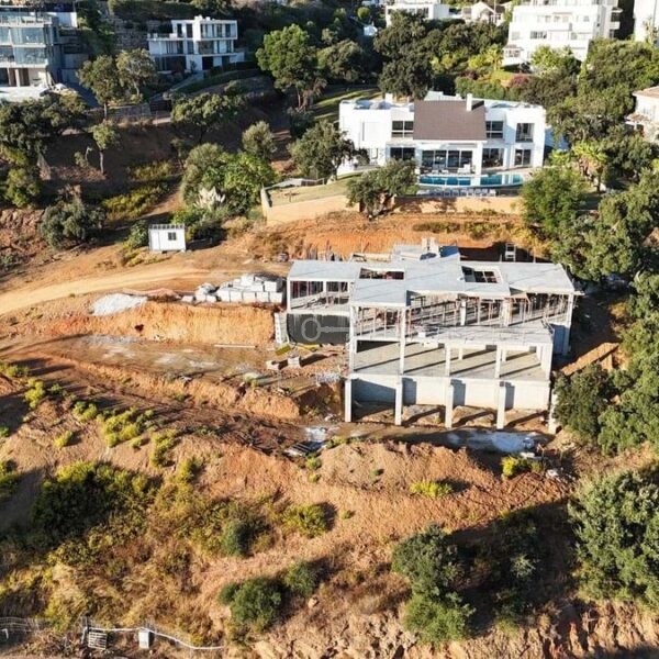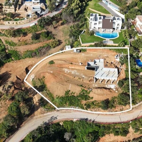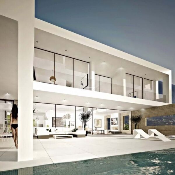 Currently under construction, the villa is designed with clean lines, expansive glass walls, and open-plan living areas that maximize natural light and the spectacular scenery. Set on a generous plot of over 3,700 m², the home boasts over 550 m² of built space plus 175 m² of terraces and a 300m2 solarium perfect for entertaining, relaxing, or simply enjoying the tranquility of the setting.