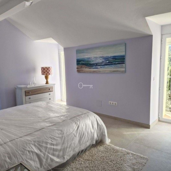 The exterior of the villa includes a large terrace, perfect for enjoying meals or drinks while taking in the stunning views. Inside, the villa features a fully equipped kitchen, a cozy living room and a luxurious master bedroom suite with its own private terrace. The villa also has a huge garden, perfect for relaxing in the sun while enjoying a peaceful atmosphere.