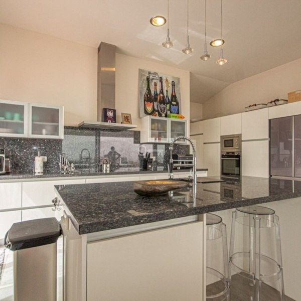 Three of the bedrooms enjoy the same spectacular outlook. The master suite is particularly impressive, offering its own private terrace with direct access to the pool area. It also comes with a generous walk-in wardrobe and a large, well-appointed bathroom, providing both comfort and privacy.