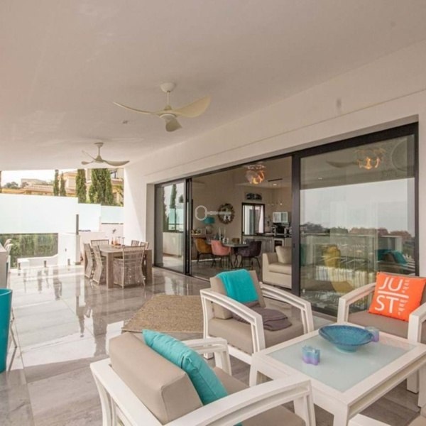 The main living area is spacious, with high ceilings, large windows, and an open-plan kitchen that flows directly onto the terraces. These terraces are perfect for enjoying outdoor dining, relaxing by the pool, or simply taking in the scenery that stretches across the golf valley of La Cala Golf, over to Coín, Mijas and Benalmádena, and even as far as the Sierra Nevada on a clear day.