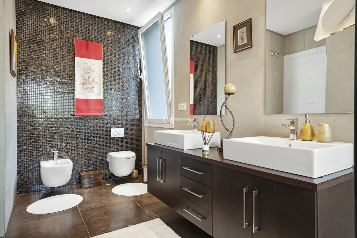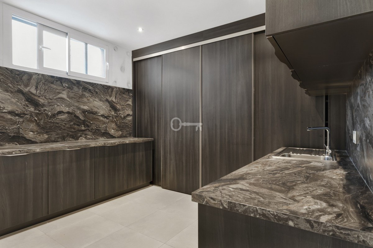 On level -1 there is an additional bedroom with a bathroom, a large utility room with a laundry, ironing room and cleaning facilities, a spacious room that can be adapted into a TV room, gym, office or home wellness. Additionally, on the same level there is a garage for 3-4 cars, bicycles or motorbikes.