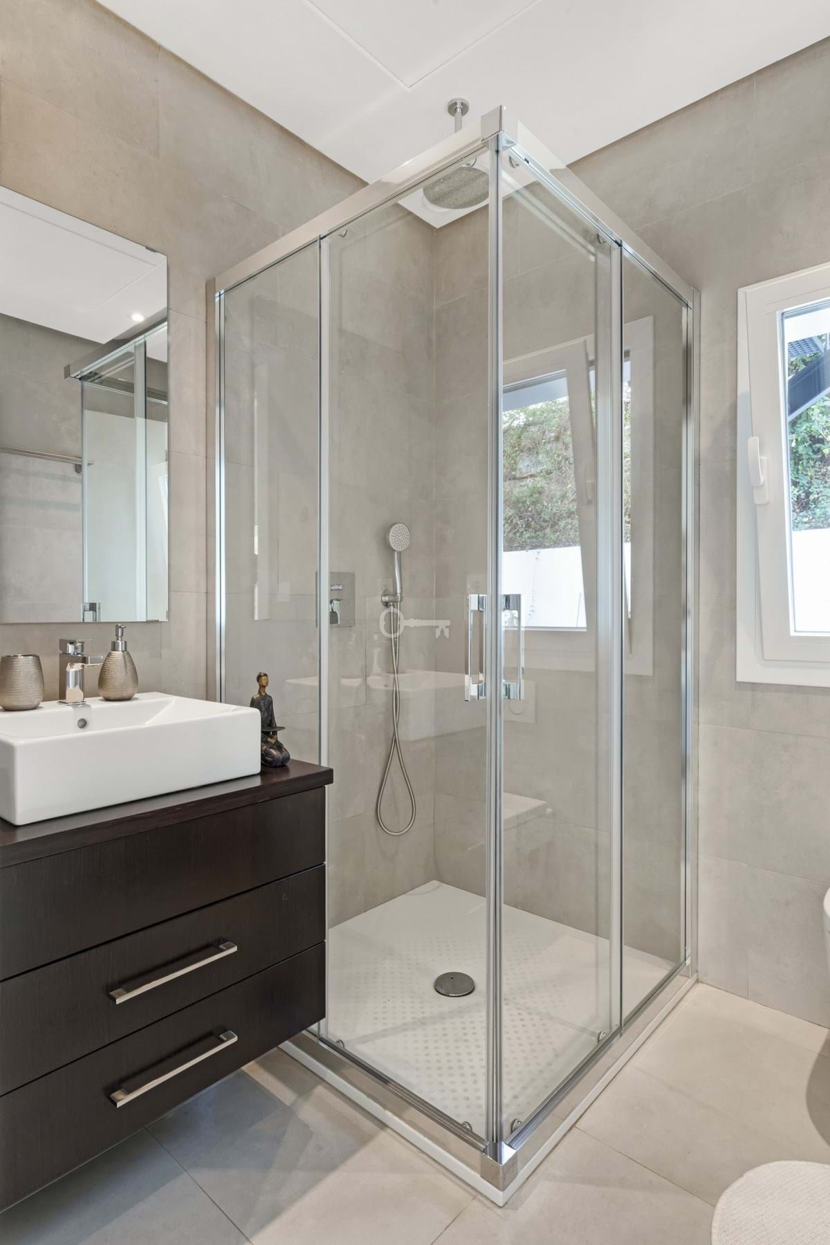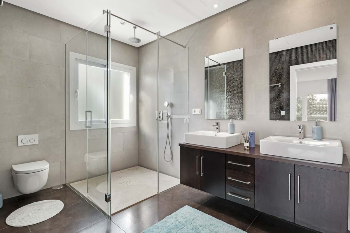 On the first floor there are 2 bedrooms, each with its own en suite bathroom and access to the terrace.
