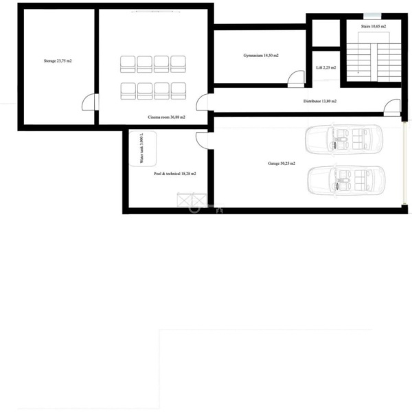 Basement/garage: garage, distributor, elevator, gymnasium, technical room, cinema room and storage room.