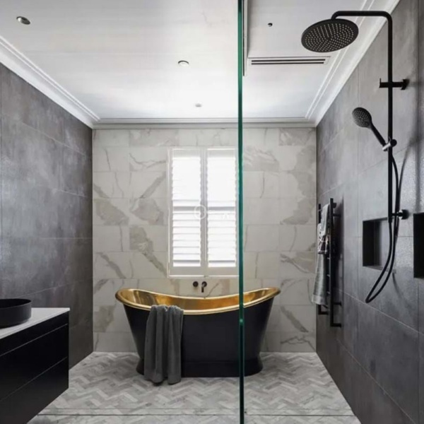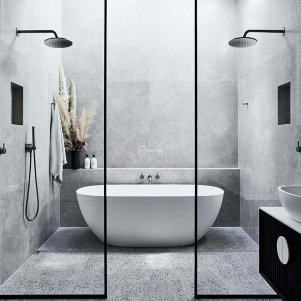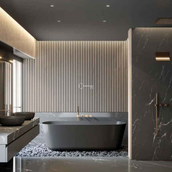 – Bathroom walls fitted out with COVERLAN wall plates of 1200×2700