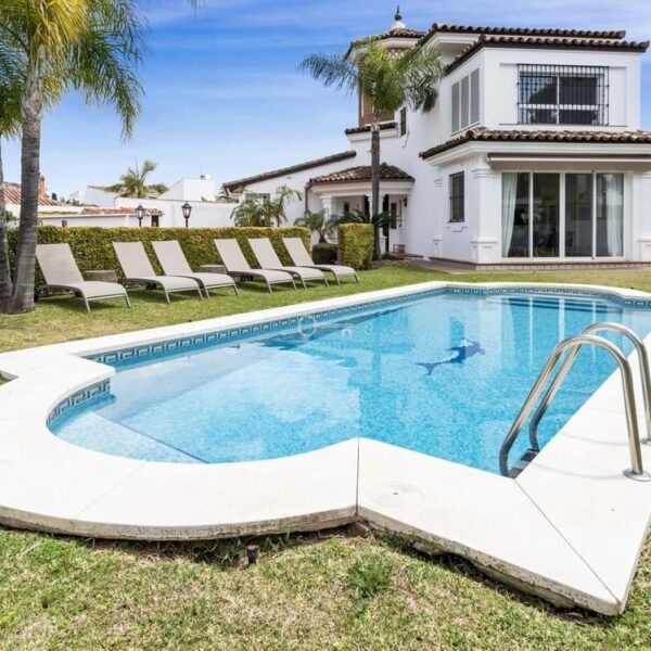 Nestled in the serene Las Chapas Playa, 300 meters from the sandy shores, awaits a stunning 5-bedroom, 6 bathroom villa. This idyllic property is conveniently situated just a 5-minute drive from Marbella Centre and a 40-minute journey from Malaga Airport, ensuring both accessibility and tranquility.