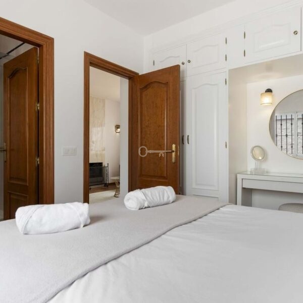 Behind the villa you find a secluded guest apartment complete with a living room, compact kitchen, a double bedroom, and a bathroomproviding an ideal sanctuary for additional privacy or visiting guests.