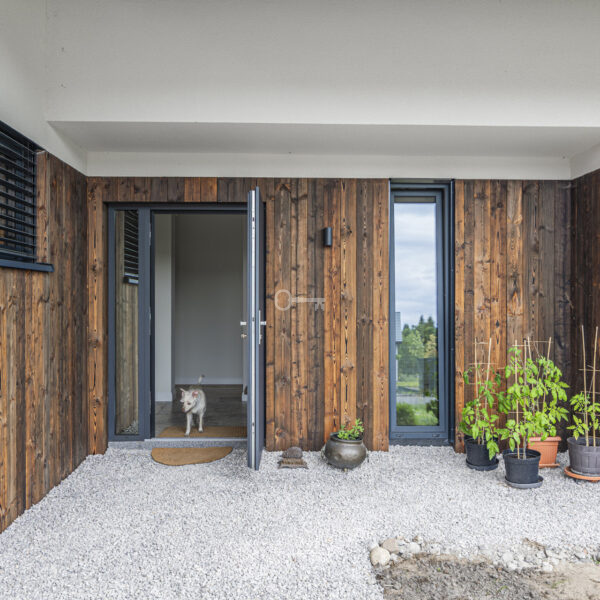 The building is distinguished by a simple, elegant body, large glazing and wooden accents, which give it a unique character.
