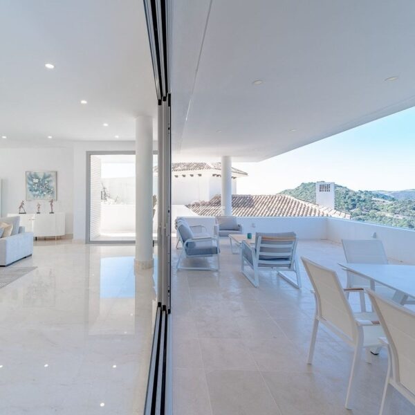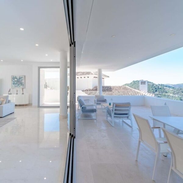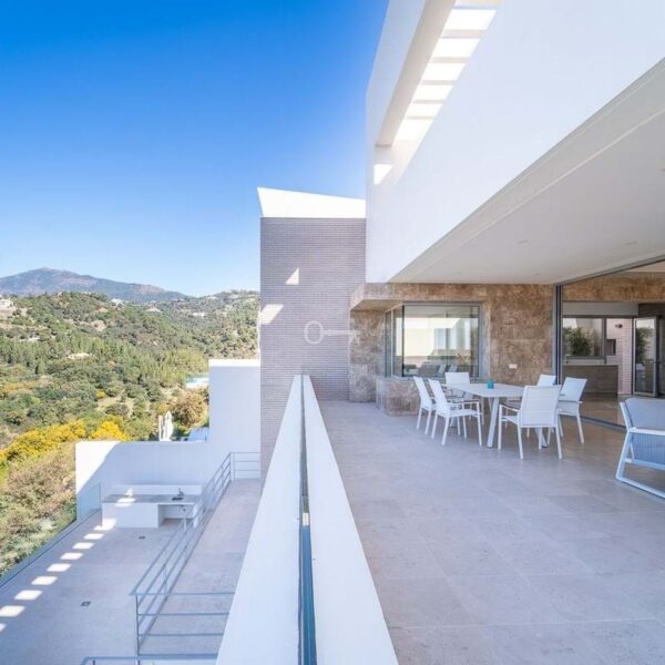 Newly built contemporary villa, finished on two floors plus basement, plus roof top, accessible by stairs and elevator. It is located in a natural environment, surrounded by golf and mountain, providing nice open views to those, panoramic sea view from the solarium and good sea view from some areas of the house. It is prepared to install amenities such as gym, spa area, cinema room and a wine room. It is a very spacious property, built with top quality materials, such as natural stone and Travertino marble floors. A very nice area with 24h security and a club house that offers an 18 holes golf course designed by Severiano Ballesteros, a tennis club, a bowling alley, restaurants, shops and a gym.